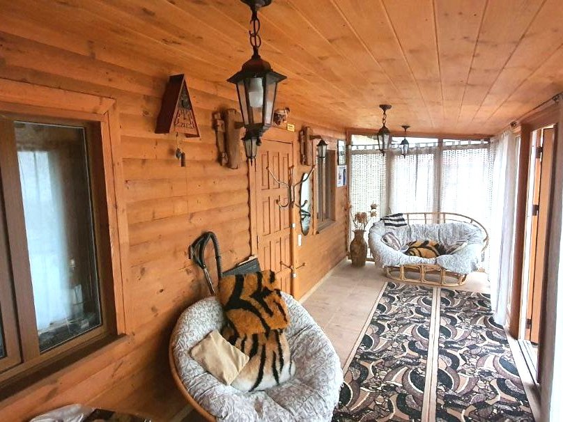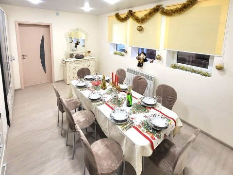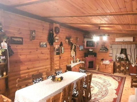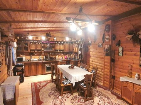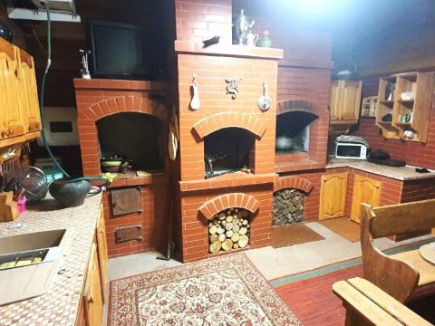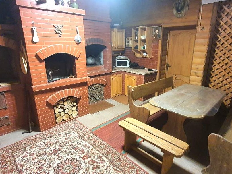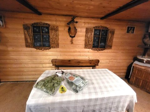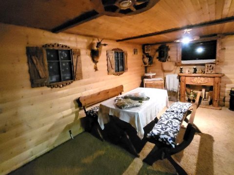 В коттедже есть банкетный зал на 12 персон. Имеется гостевой домик на 16 человек в старинном этно-стиле, где можно проводить любой праздник. Его можно арендовать без спальных мест отдельно от коттеджа.