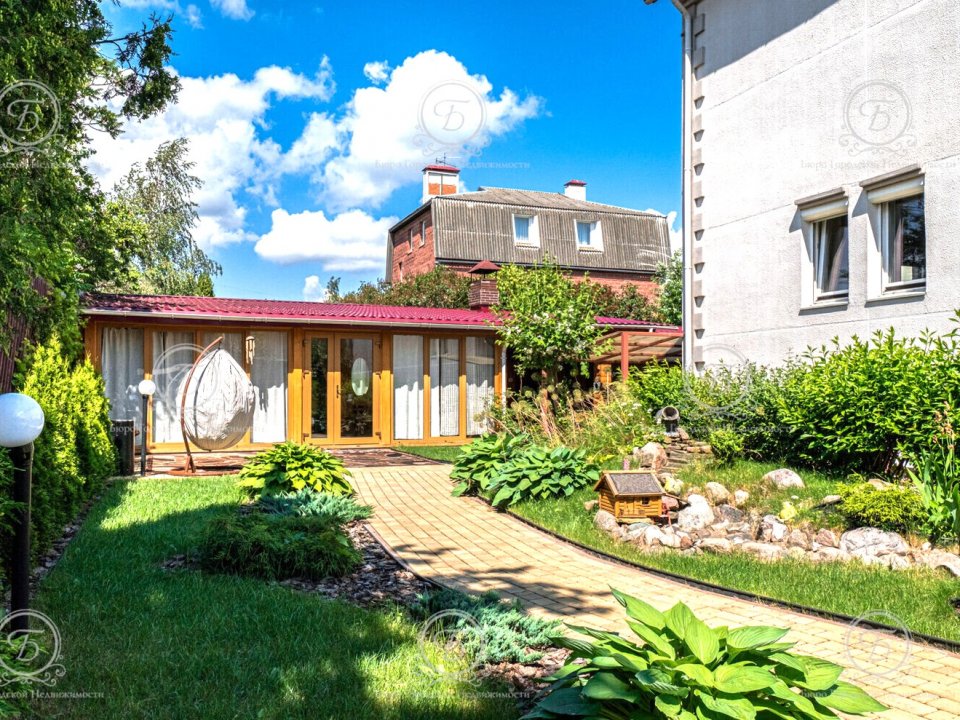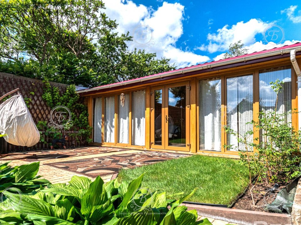 Ухоженная территория участка порадует вас своей красотой: ландшафтный дизайн, газон, цветочные кустарники.