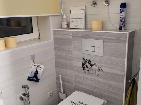Вся техника и мебель абсолютно новые. Ваш комфорт обеспечен автоматической системой отопления, системой подогрева пола, безлимитным интернетом с Wifi.