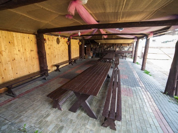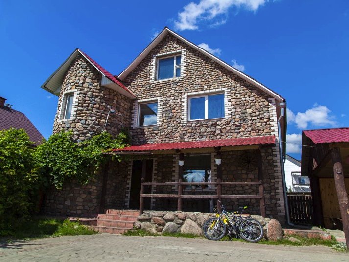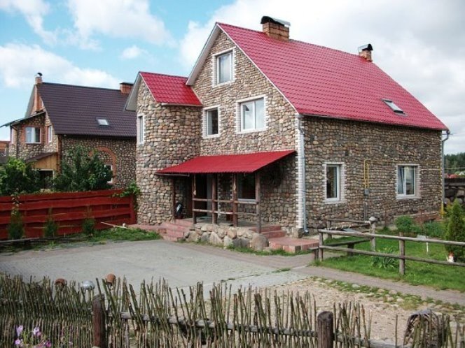 Вместительный трёхэтажный коттедж идеально подойдёт для того, чтобы отметить любое торжество, отпраздновать свадьбу, организовать банкет или провести корпоратив.... Наш коттедж на сутки – это сочетание старинного стиля постройки и современных технологий. Имеются все необходимые коммуникации, различная техника и оборудование, мебель и необходимая посуда. На первом этаже расположен огромный танцпол с музыкальным центром и цветомузыкой. Для любителей активного отдыха предлагаем сыграть в настольный теннис, стол для которого находится здесь же. В вашем распоряжении второй этаж с банкетным залом, рассчитанным на 50, а в случае необходимости и более человек. Зал оснащён камином, телевизором и караоке. На этом же уровне расположены кухня, санузел и душ. Третий этаж включает в себя 4 отдельные спальные комнаты для размещения наших гостей на ночь и дополнительный санузел. Во дворе есть все необходимое для отдыха на свежем воздухе: беседки и навесы на разное количество компаний, барбекю и мангалы, пруд с карпом, в котором желающие могут порыбачить. Улов можно тут же закоптить в коптильне. Для любителей попариться предлагаем посетить сауну с финской парной. Находится она в отдельно стоящем здании и состоит из большой комнаты отдыха с камином, парной, санузла и душа с купелью. Для приехавших на личном автотранспорте предоставляется парковка. Без проблем до усадьбы можно добраться и на общественном транспорте, на автобусе № 397 от автостанции "Московская". Возможность организации питания. По договорённости владелец организует охоту. Предложим услуги повара по обслуживанию банкета. Повар-профессионал приготовит из ваших продуктов и обслужит ваше мероприятие. Стоимость услуги 5 $ с человека. На территории усадьбы расположены ещё один каменный коттедж и двухэтажный дом с баней, которые тоже сдаются посуточно(см. коттеджи № 87 и 89). У каждого дома своя огороженная территория. На время аренды усадьбы вносится залог за имущество в размере 30% от арендной платы. Если факт порчи имущества не был зафиксирован, то залоговая сумма возвращается полностью. Ежели факт порчи имел место, хозяин из залоговой суммы высчитывает сумму повреждения. Снять коттедж № 86 или другую усадьбу на сутки можно на нашем сайте www.Snimi.net. ОТДОХНУВ В ЛЮБОМ ИЗ ПРЕДСТАВЛЕННЫХ КОТТЕДЖЕЙ, НЕ ЗАБУДЬТЕ ПЕРЕЗВОНИТЬ НАМ, ЧТОБЫ ПОЛУЧИТЬ НЕБОЛЬШОЙ ПОДАРОК ОТ САЙТА.