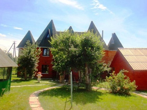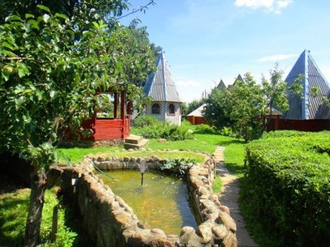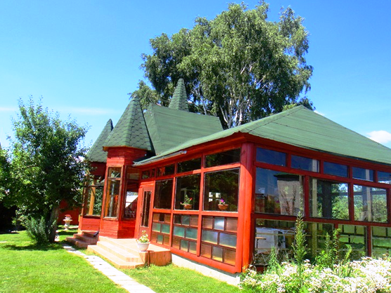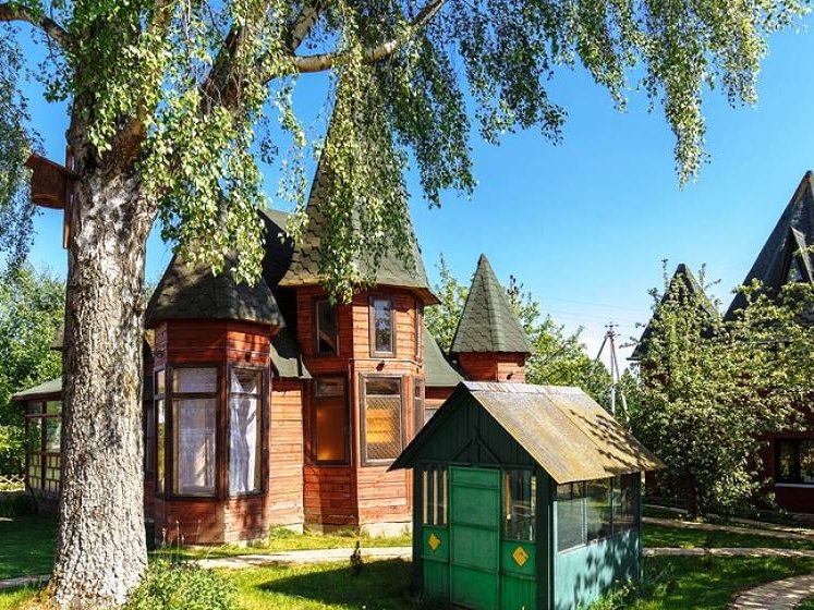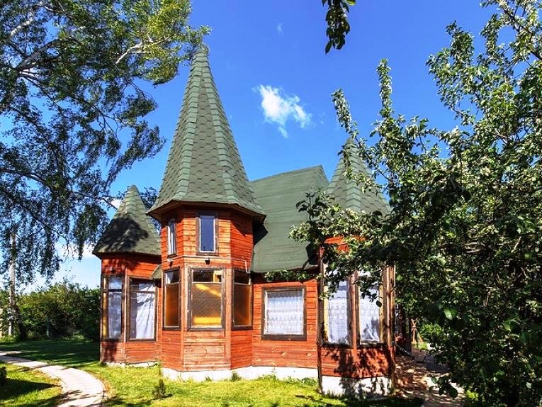 Усадьба включает в себя двухэтажный гостевой дом с бильярдной и каминным залом, отдельно стоящую русскую баню на дровах, деревянный летний дом, а также уютный домик-башню и оригинальный дом из красного бруса.