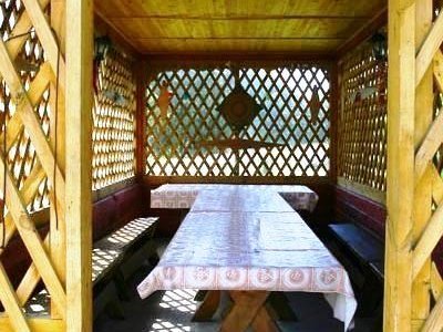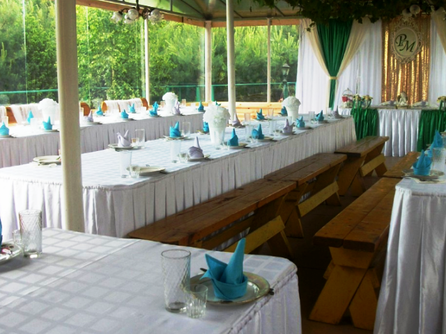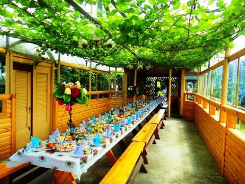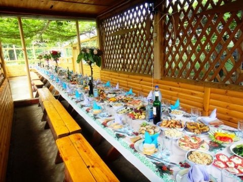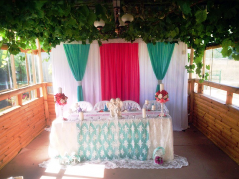 Для проведения торжеств предоставляется просторная застеклённая беседка на 100 посадочных мест. Рядом крытая танцевальная площадка, окружённая живой виноградной лозой.