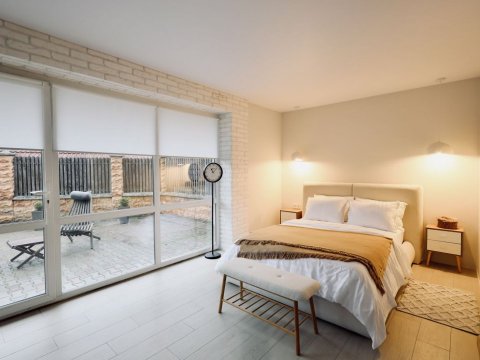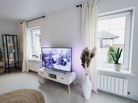 Небольшой уютный домик со спальней, гостиной и оборудованной кухней (мини-холодильник, варочная панель, духовой шкаф)....