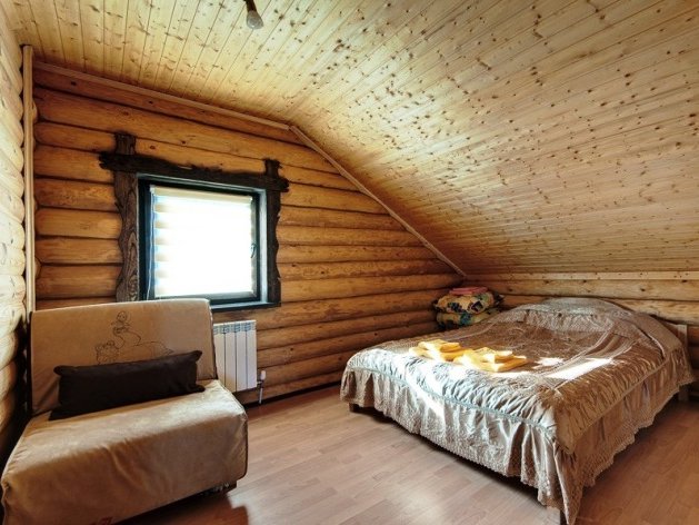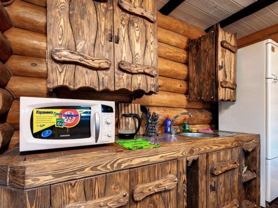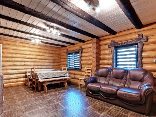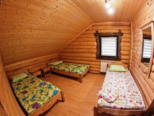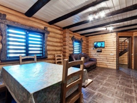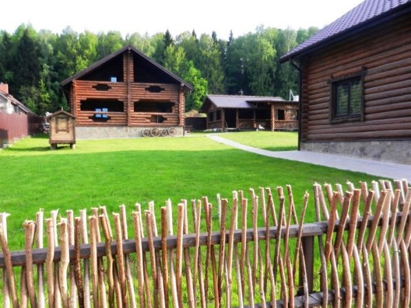 Все три дома построены из экологически чистых материалов — срублены вручную из сосновых бревен. В каждом доме на ночь с комфортом могут разместиться до 10 человек. В дом-бане с тёплым бассейном в полное распоряжение гостей предоставляются 3 просторные спальные комнаты, душевые кабины и санузел. Кухня, оборудованная всей необходимой техникой и посудой, позволяет самостоятельно готовить пищу.