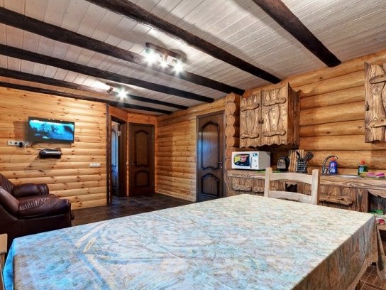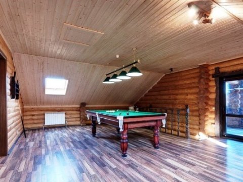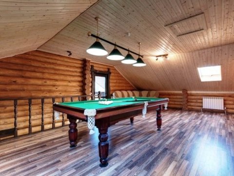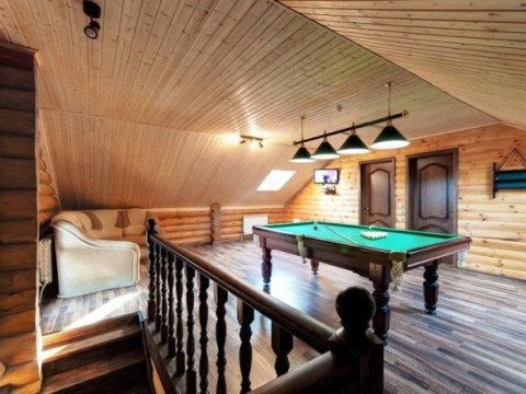 Коттедж является целым банным комплексом со спальными комнатами. Для гостей предоставляется русская баня, тёплый бассейн с внутренней подсветкой и бьющими искусственными гейзерами. В вашем распоряжении также бильярдная комната.